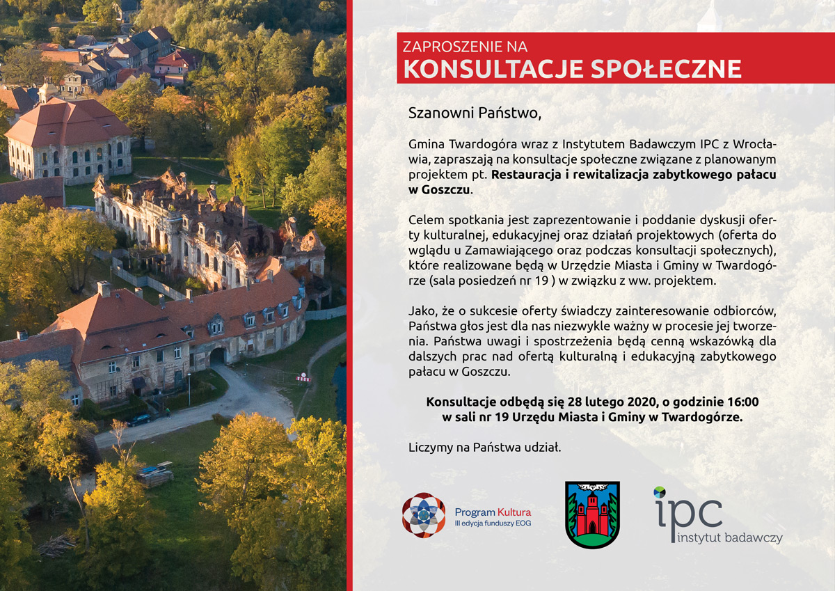 ukryj| Tytuł dokumentu: | Konsultacje społeczne w sprawie pałacu w Goszczu |